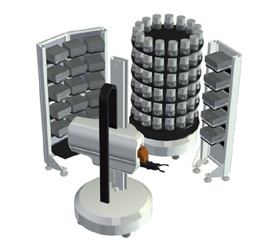 Transformer is a flexible modular automation system consisting of a changing unit which changes large and small pallets between the magazines and up to four machines in the same production cell.