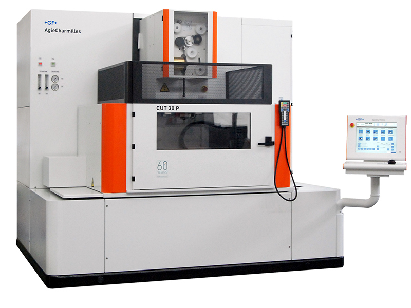 The AgieCharmilles CUT 30 P, an EDM wire cutting unit, is a very interesting machine offering outstanding features and excellent cutting performances. Equipped with joint technology from GF Machining Solutions it positions itself as the ultimate in price/performance WEDM machine in the market place. It handles wire diameters from 0.15 to 0.30 mm (0.006 to 0.012 in) with ease and is highly flexible to satisfy most of the requirements in the fi eld of general engineering and standard stamping.
